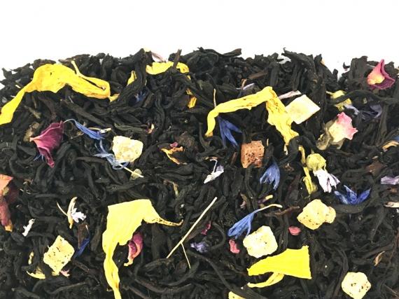 Чай чёрный «Грёзы султана» – это чёрный крупнолистовой чай с кусочками сочных тропических фруктов: