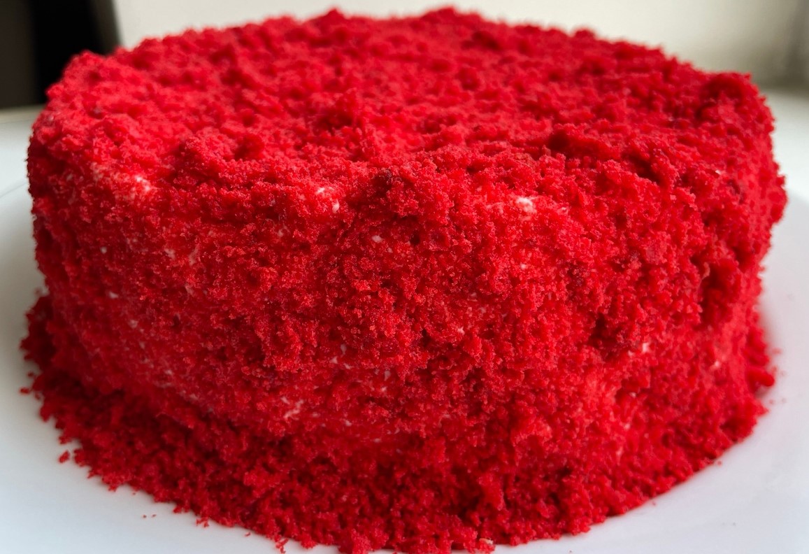 Торт «Красный бархат» — эффектный десерт с яркими шоколадными коржами и кремом на основе сливочного сыра cream cheese. Благодаря сочетанию какао, ванили и нежного крема, торт обладает насыщенным вкусом и бархатистой текстурой. Идеален для дня рождения, свадьбы, 8 Марта, романтического вечера или в качестве стильного подарка.